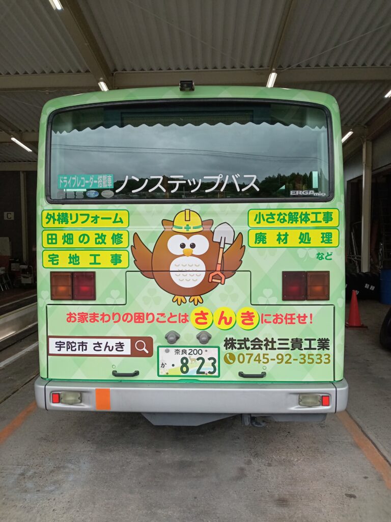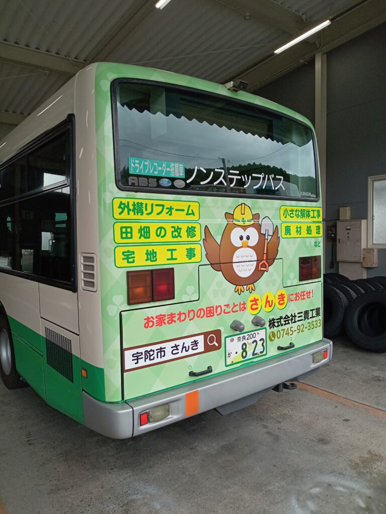 報告が遅れましたが10月20日より奈良交通路線バスに 「さんき」の広告が掲載されています 動く広告といったところでしょうか